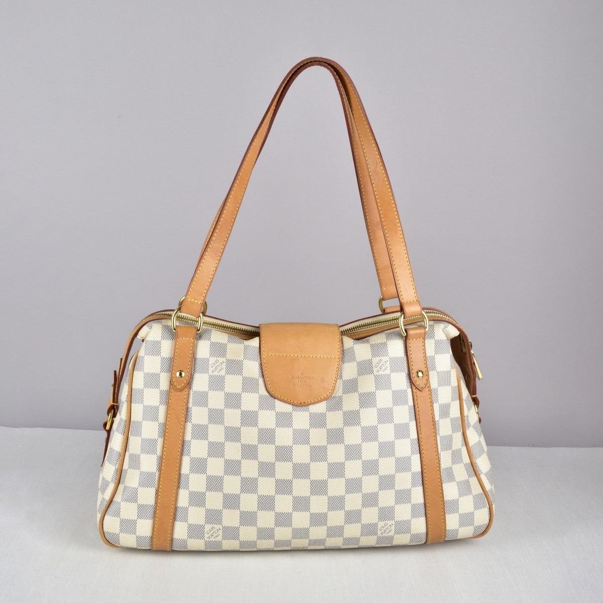 Louis Vuitton "Stresa" Monogrammed Leather Bag. Measures: 9-3/4" H, 15-3/4" W, 5-1/2" D. Condition: Good used condition. Estimate: $800.00 - $1200.00 Domestic Shipping: $68.00