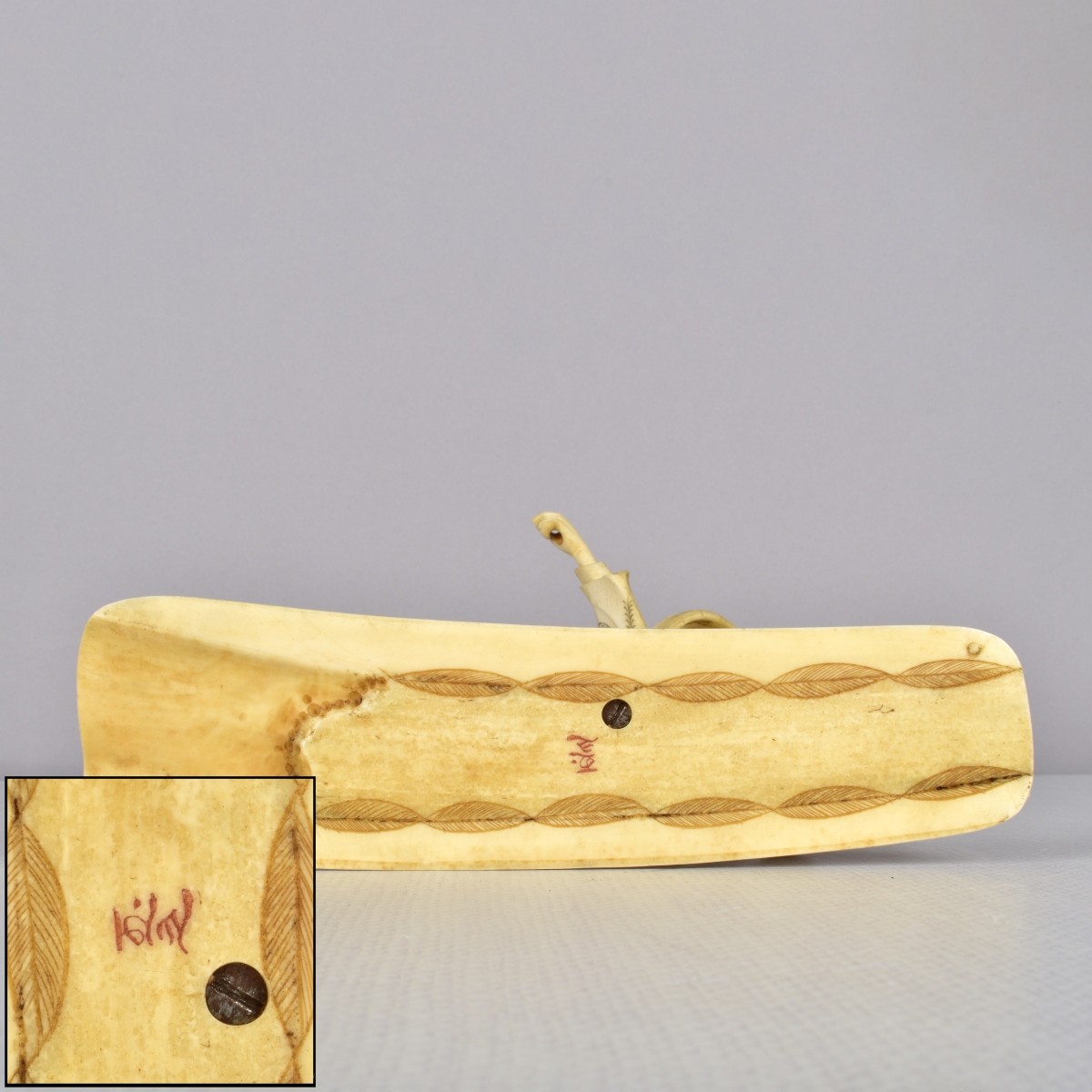 Antique Carved Figure of a Japanese Frog Fisher with a Pole and Net on a Wood Base. Figure measures: 5-3/4" H, 8-1/4" L 3-1/4" D. We Will Not Ship This Item Outside of the State of Florida. Anyone Having This Item Shipped Must Have a Florida Address or the Item will not be Shipped. We will Not Knowingly Sell Endangered Species outside of Legal Channels. Condition: Good antique condition. Bottom of basket missing. We Will Not Ship This Item Outside of the State of Florida. Anyone Having This Item Shipped Must Have a Florida Address or the Item will not be Shipped. We will Not Knowingly Sell Endangered Species outside of Legal Channels. Estimate: $100.00 - $200.00 Domestic Shipping: $66.00 (FL only.)