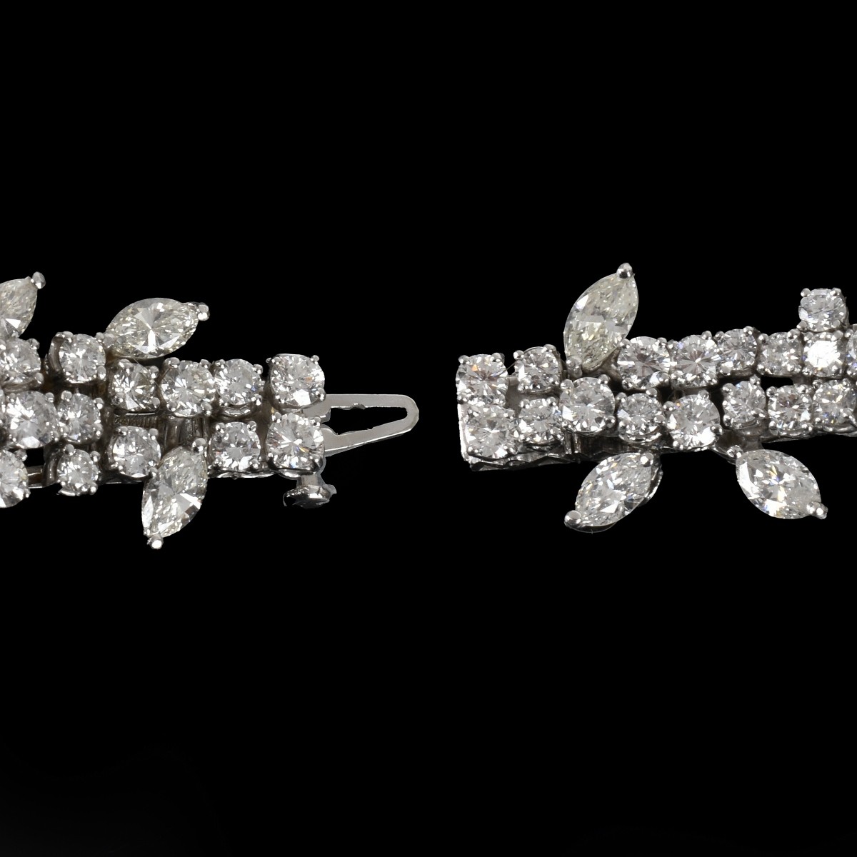 Vintage House of Kahn Approx. 35.47 Carat TW One Hundred Forty-eight Round Brilliant and Baguette Cut Diamond and Platinum Floral Cluster Bracelet. Diamonds F-G color, VS clarity. Measures 6-1/2" L. Approx. weight: 63.0 grams. Condition: Very good vintage condition. For additional information and/or WhatsApp video please contact our resident GIA Graduate Gemologist, Russ Kodner at 954.650.5030 Estimate: $25,000.00 - $30,000.00 Domestic Shipping: $40.00