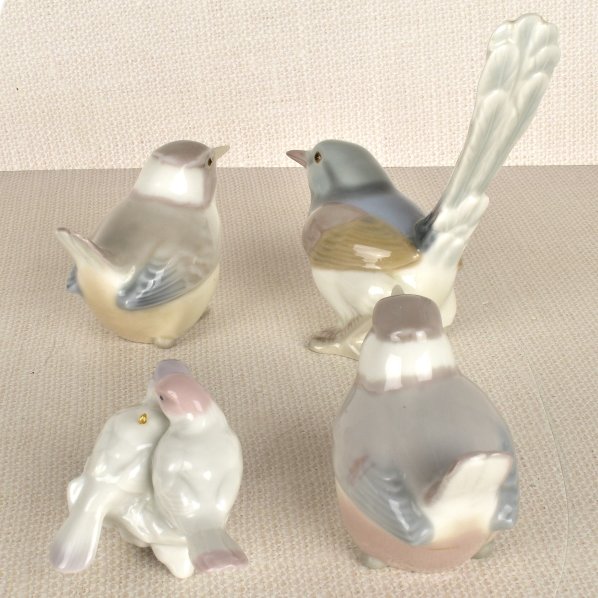 Four (4) Lladro Porcelain Bird Figurines, one is an ornament.. All appropriately signed. Largest measures 5-1/4" H x 5-1/8' L x 2" W. Condition: Good Condition. Estimate: $100.00 - $150.00 Domestic Shipping: $58.00