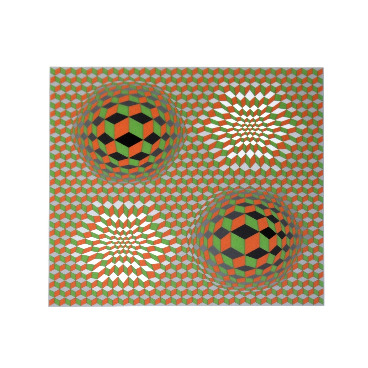 Victor Vasarely, French/Hungarian (1906-1997) "Cosmos" Limited Edition Signed Multi Geometric Shape Color Serigraph. Framed under glass. Signed and numbered "9/10 H-6" in pencil. Image area measures: 12-1/2" H, 12" W. Frame measures: 24-1/2" H, 20-1/2" W. Condition: Good condition. Estimate: $250.00 - $400.00 Domestic Shipping: Third party.