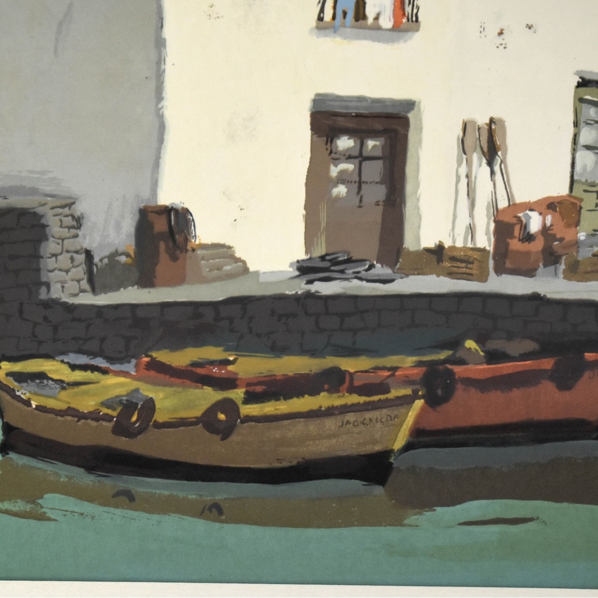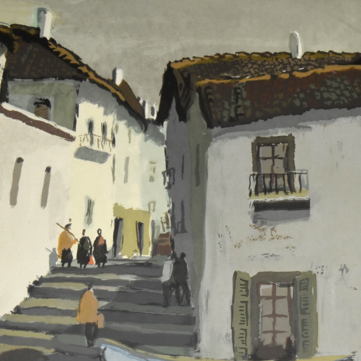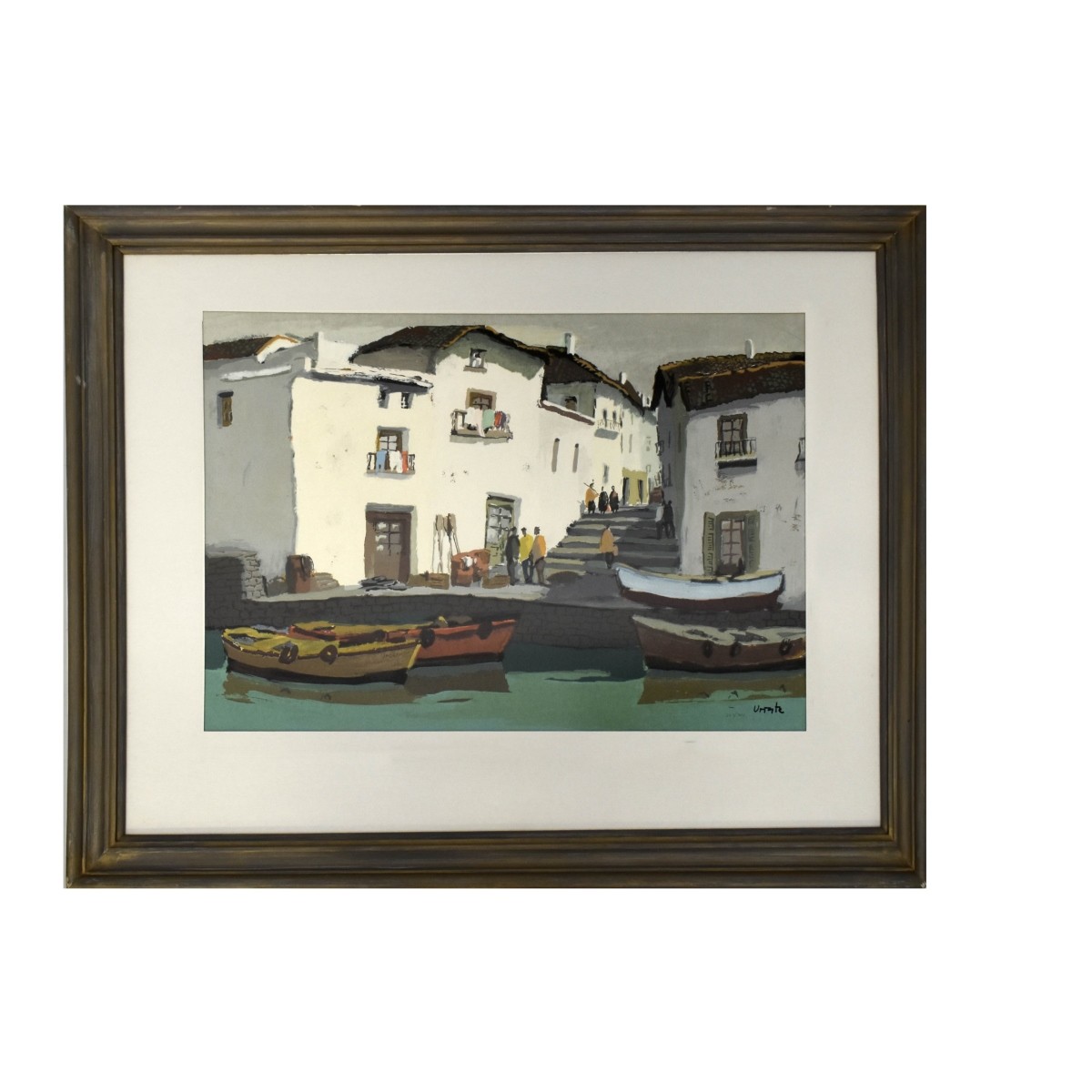Venice Canal Scene. Lithograph framed and matted under glass. Artist signed bottom right-hand corner. Image area measures: 19-1/4" H, 27" W, frame measures: 30-1/2" H, 38" W. Condition: Good condition. Estimate: $100.00 - $300.00 Domestic Shipping: Third party.