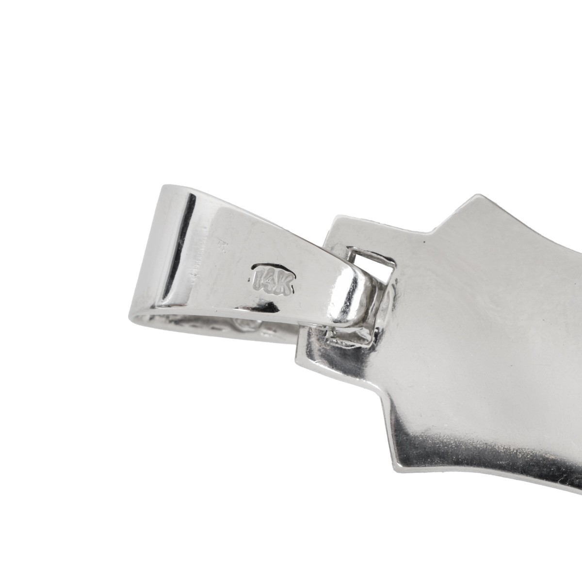 Approx. 1.62 Carat TW Seventy-two Round Brilliant Cut Diamond and Rhodium Plated 14 Karat Gold Cross Pendant. Diamonds F-G color, VS2-SI1 clarity. Stamped 14K. Measures 2-7/8" H, 1-5/8" W. Approx. weight: 36.83 grams. Kodner Galleries offers phone and absentee bidding at a low, flat 21% buyerís premium without surcharge or hidden fees. For information, please contact the gallery at info@kodner.com or 954.925.2550 Condition: Very good condition. Estimate: $2000.00 - $4000.00 Domestic Shipping: $40.00