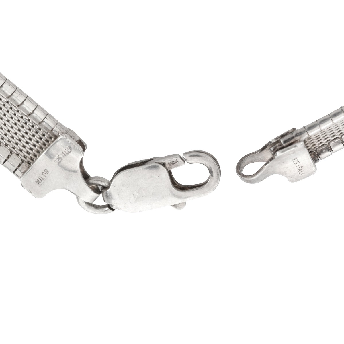Vintage Italian Sterling Silver Omega Necklace. Stamped Italy 925. Measures 16" L, 3/8" W. Approx. weight: 45.24 grams. Kodner Galleries offers phone and absentee bidding at a low, flat 21% buyerís premium without surcharge or hidden fees. For information, please contact the gallery at info@kodner.com or 954.925.2550 Condition: Good vintage condition. Estimate: $100.00 - $200.00 Domestic Shipping: $40.00