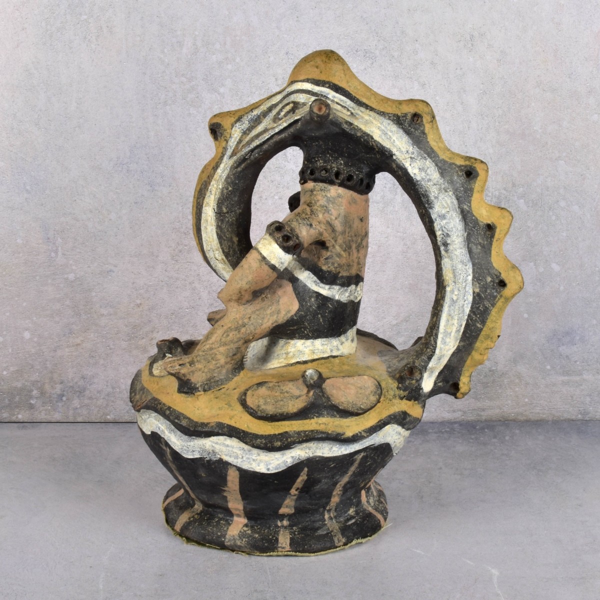 Vintage South American Art Pottery Deity. Body of a man with the head and tail of a crocodile. Hand painted and formed. It measures: 11" H., 7" W., 10" D. Kodner Galleries offers phone and absentee bidding at a low, flat 21% buyerís premium without surcharge or hidden fees. For information, please contact the gallery at info@kodner.com or 954.925.2550 Condition: Good condition Estimate: $100.00 - $200.00 Domestic Shipping: Third party