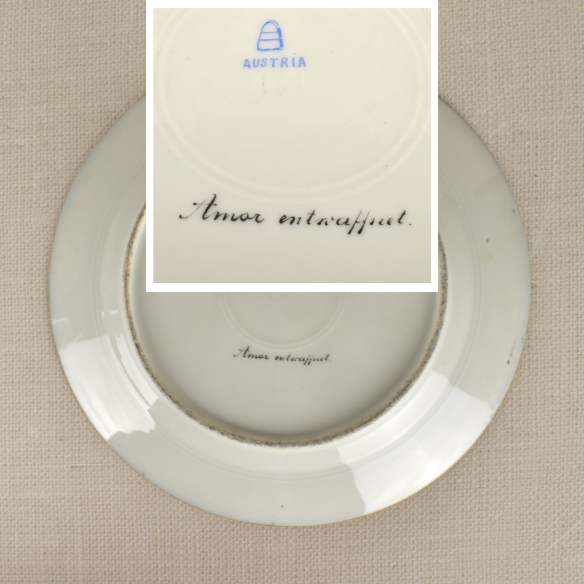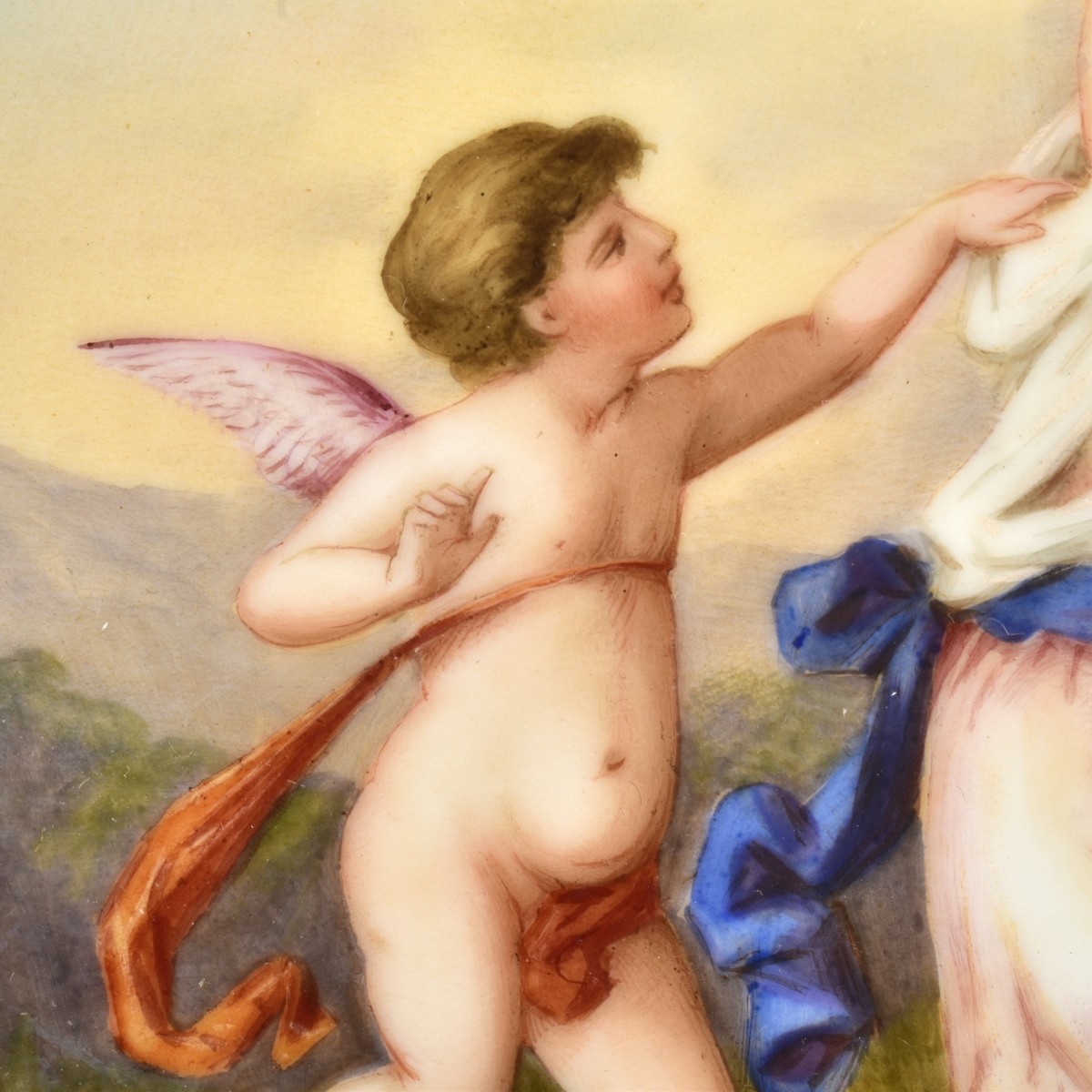 19/20th Century Royal Vienna Porcelain Cabinet Plate "Cupids Bow " Cobalt Blue and Gilt Hand Painted Portrait Plate. Signed Kauffmann. Marked on the back with the Royal Vienna beehive mark under glaze. Circa 19/20th century. Measures: 9-1/2" Dia. Kodner Galleries offers phone and absentee bidding at a low, flat 21% buyerís premium without surcharge or hidden fees. For information, please contact the gallery at info@kodner.com or 954.925.2550 Condition: Good condition. Estimate: $400.00 - $600.00 Domestic Shipping: $88.00