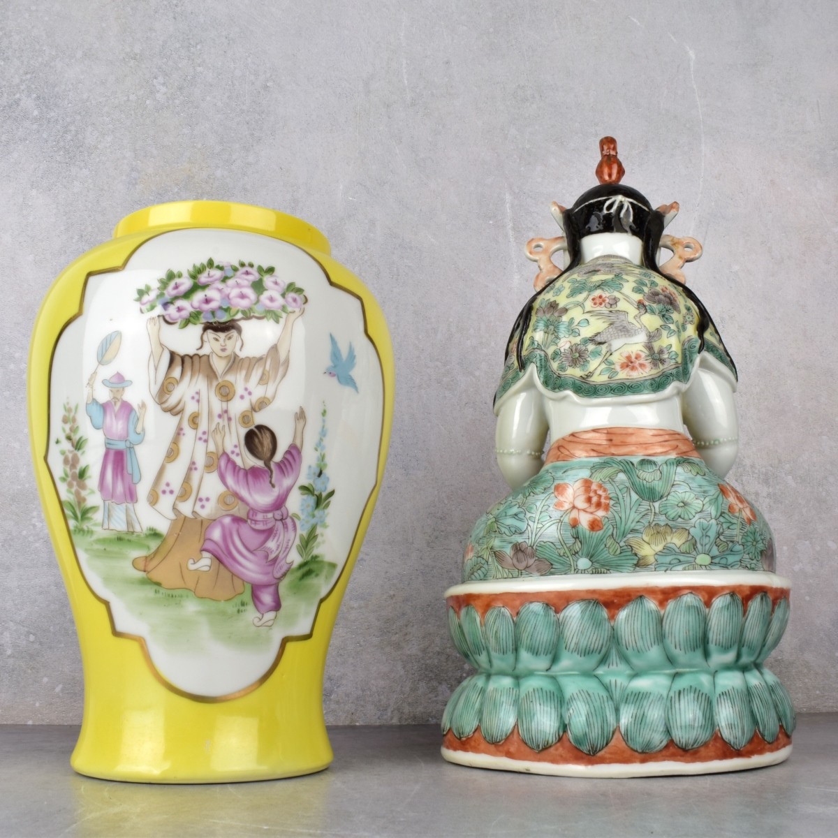 Two (2) Chinese Rose Medallion Pieces. Consisting of one (1) baluster shape vase, measures: 9" H., 5-1/2" Dia., one (1) sitting Buddah figure. measures: 12" H., 6" H., 4-1/2" D. Kodner Galleries offers phone and absentee bidding at a low, flat 21% buyerís premium without surcharge or hidden fees. For information, please contact the gallery at info@kodner.com or 954.925.2550 Condition: Good condition. Estimate: $150.00 - $250.00 Domestic Shipping: Third party.