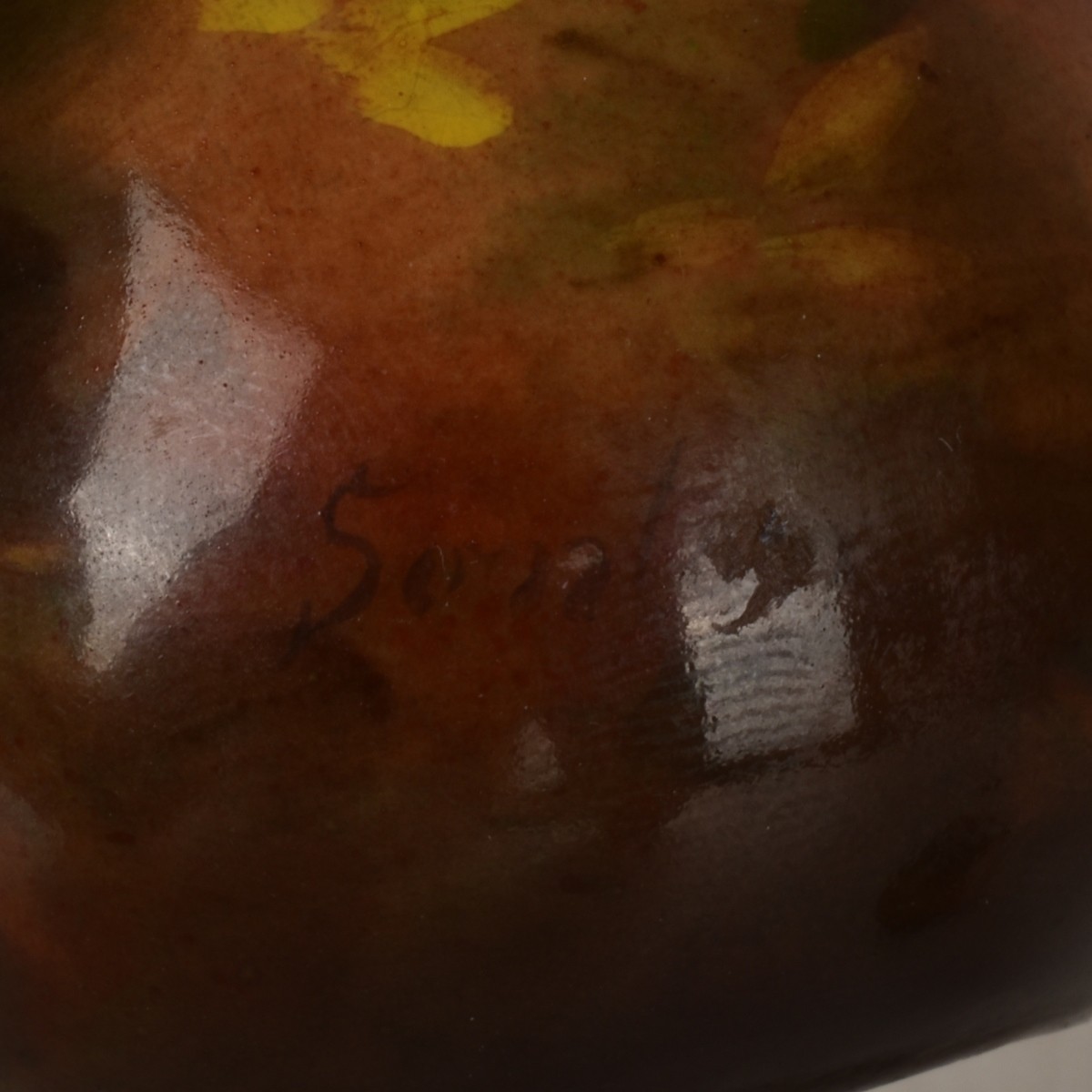Collection of Three (3) German Miniature Art Nouveau Porcelain Portrait Vases. Each vase with a gold enameled flared top rim and signed "Sontag" to the side, also two are marked "Made in Germany". 19/20th century. Measures: 3-1/2" H, 1-7/8" D. Kodner Galleries offers phone and absentee bidding at a low, flat 21% buyerís premium without surcharge or hidden fees. For information, please contact the gallery at info@kodner.com or 954.925.2550 Condition: Good condition. Estimate: $150.00 - $250.00 Domestic Shipping: $58.00