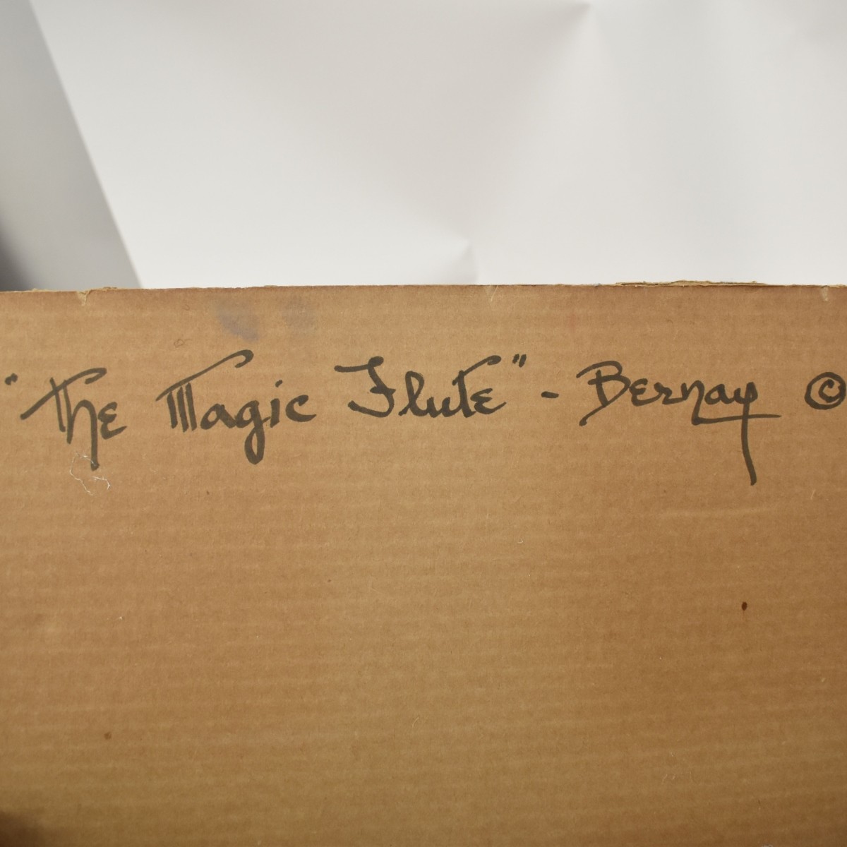 Betti Bernay, American (1926-2010) "The Tragic Flute" Pastel on poster board. Signed bottom-right hand corner. Measures: 24" H., 20" W. Kodner Galleries offers phone and absentee bidding at a low, flat 21% buyerís premium without surcharge or hidden fees. For information, please contact the gallery at info@kodner.com or 954.925.2550 Condition: Some rubbing, otherwise good condition. Estimate: $100.00 - $300.00 Domestic Shipping: Third party.