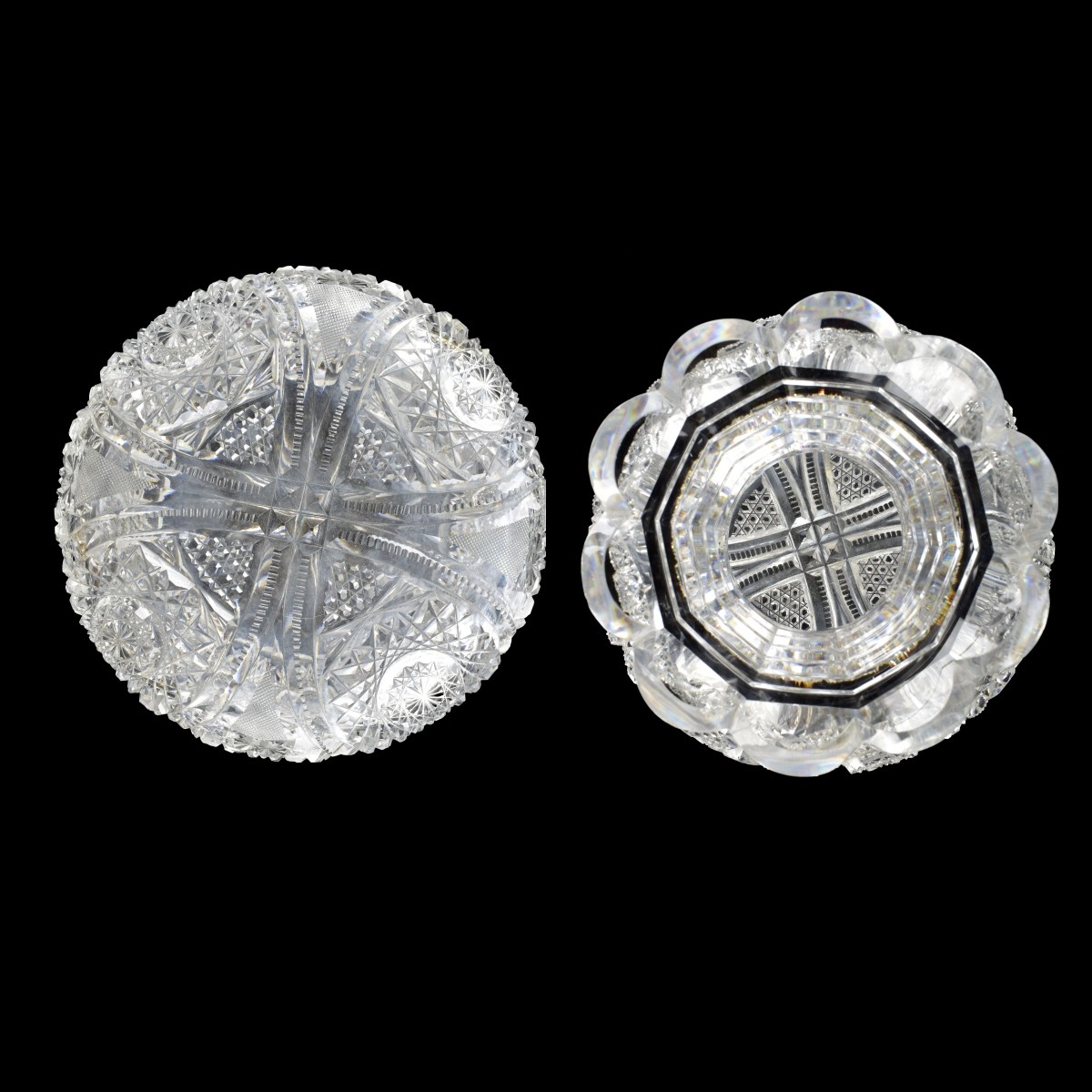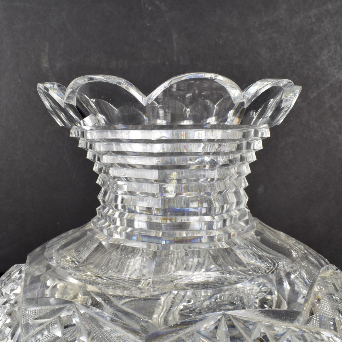 Vintage American Brilliant Cut Crystal Vase. Measures: 6-1/4" H., 8" Dia. Kodner Galleries offers phone and absentee bidding at a low, flat 21% buyerís premium without surcharge or hidden fees. For information, please contact the gallery at info@kodner.com or 954.925.2550 Condition: Good condition. Estimate: $150.00 - $250.00 Domestic Shipping: $68.00