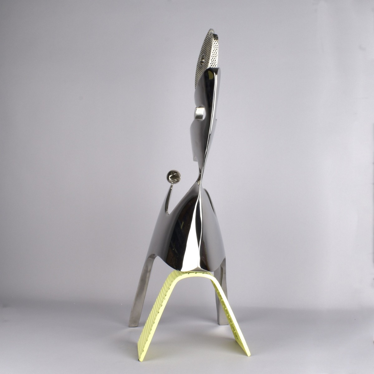 Modern Abstract Chrome Sculpture on a Painted Metal Arch Fixed Stand. Artist signed, numbered 2/10 and dated March 2000 . Measures 26" H,14" W, 5-1/2" D. Kodner Galleries offers phone and absentee bidding at a low, flat 21% buyerís premium without surcharge or hidden fees. For information, please contact the gallery at info@kodner.com or 954.925.2550 Condition: Good condition, very minor paint loss. commensurate with age. Estimate: $1000.00 - $2000.00 Domestic Shipping: Third party